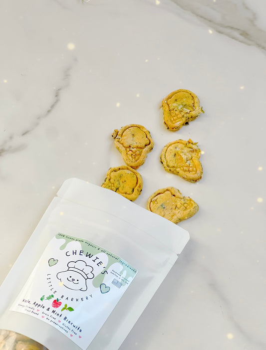 Welcome to Chewie's Little Barkery where we believe every dog deserves the very best! We're proud to offer a carefully curated selection of products that are Gluten-free, organic, all natural and free from chemicals, preservatives, or funky fillers- just pure wholesome ingredients! Unlike many other stores, we never use seed oils and focus on natural ingredients to create clean, wholesome products you can trust. We're also committed to keeping our recipes as allergy-friendly as possible, so you can feel good about every bite your pup takes. Thank you for letting us be part of your pup's healthy, happy life—Because we believe every dog deserves treats that are as pure and joyful as they are!